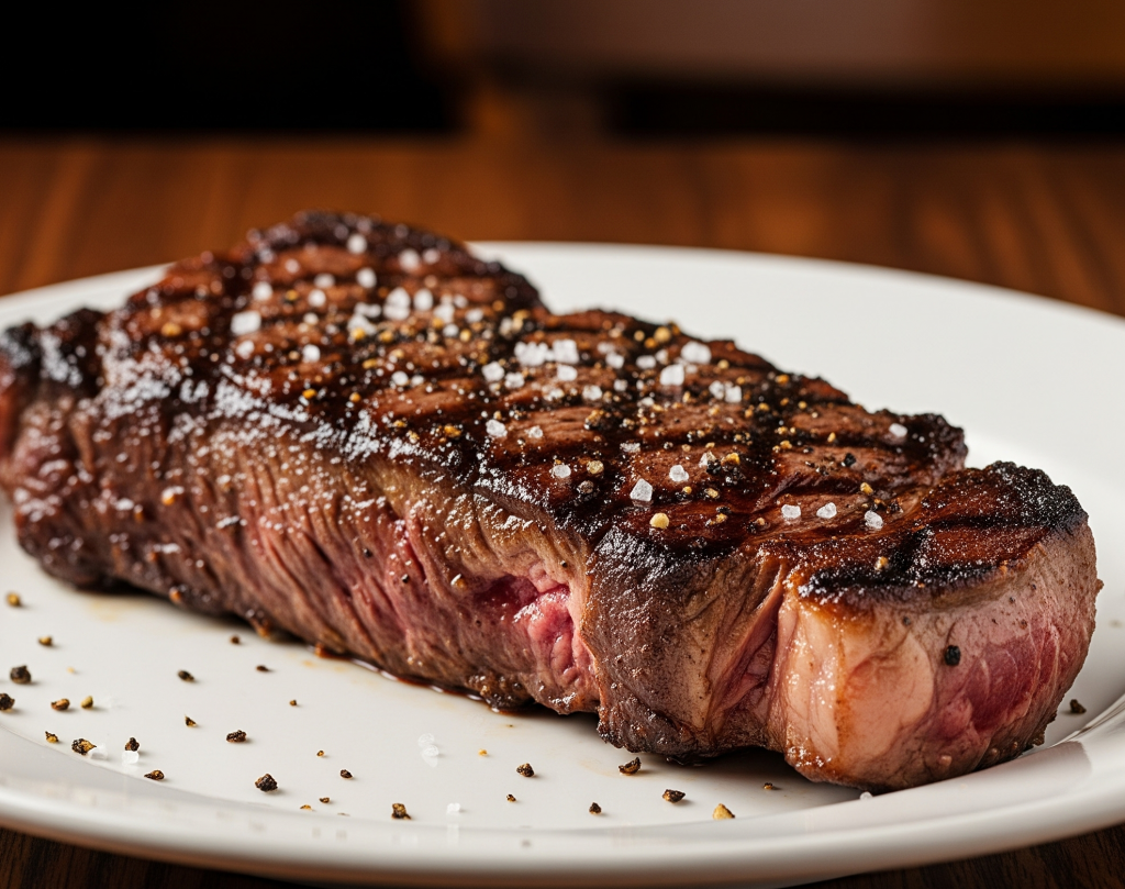 厚切、外焦裡嫩的頂級牛排,簡單調味,盡顯牛肉的原始風味。