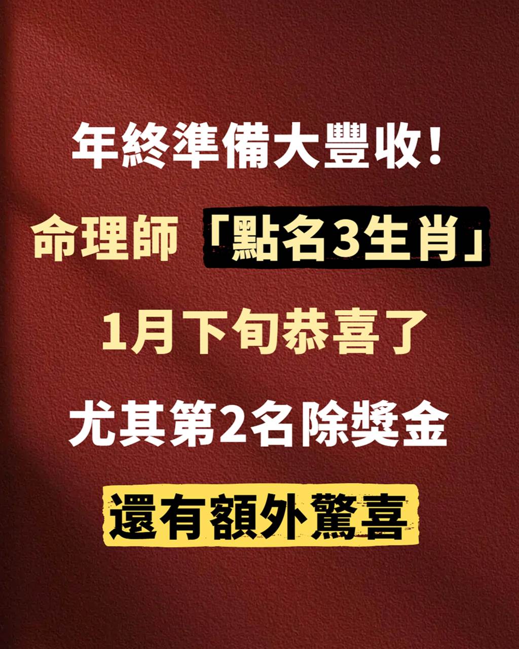 🎉 年終準備大豐收!命理師點名「3 生肖」1 月下旬恭喜了——尤其第 2 名,不只獎金,還有額外驚喜! 🎉