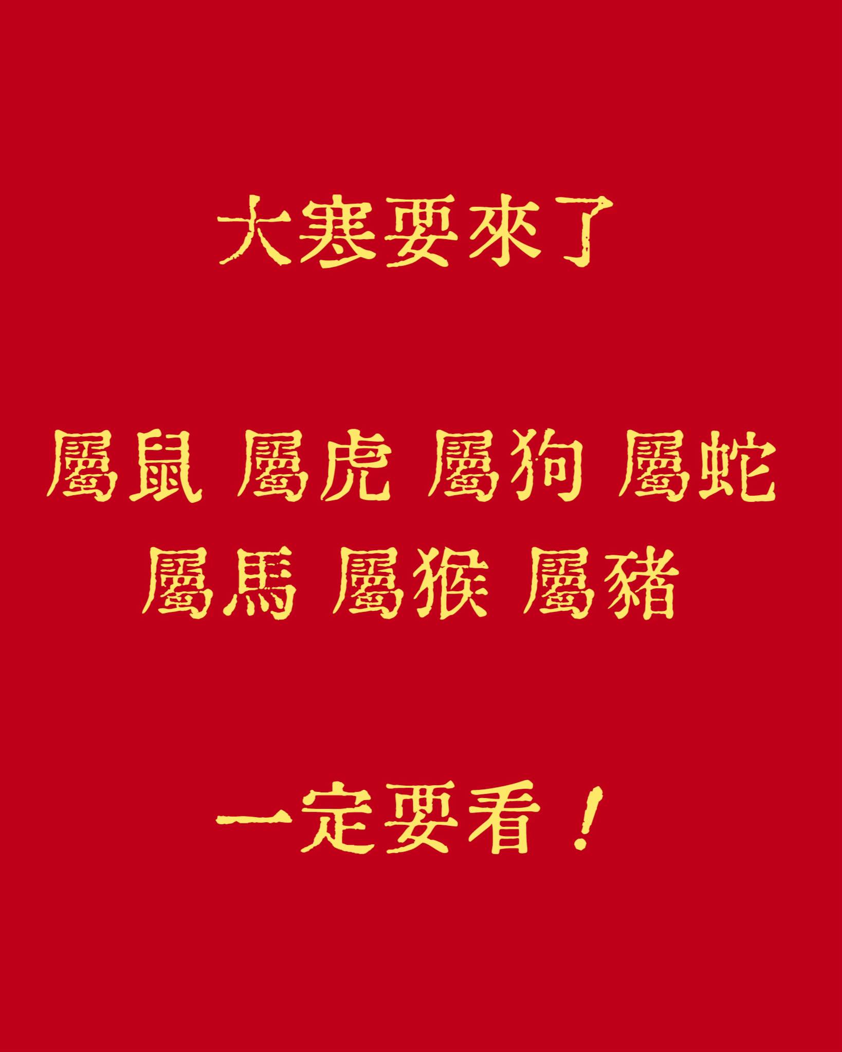 🌨 大寒要來了!「屬鼠、屬虎、屬狗、屬蛇、屬馬、屬猴、屬豬」一定要看! 🌨