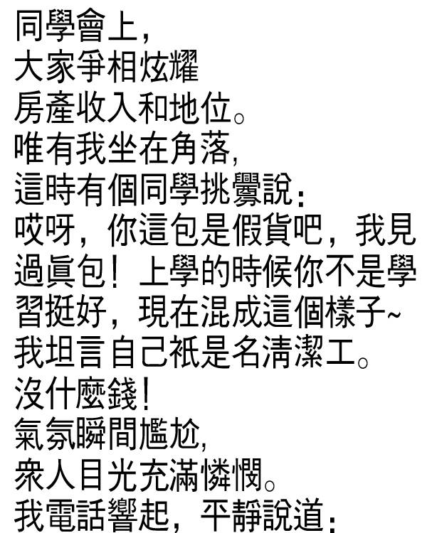 真相: 妳很會收集資訊,看起來博學多才,但妳的深度是有條件的。妳知道很多冷知識,但真要讓妳動手做,妳就會說:「這題超綱了」。妳這叫「戰術上的勤奮,戰略上的懶惰」。
