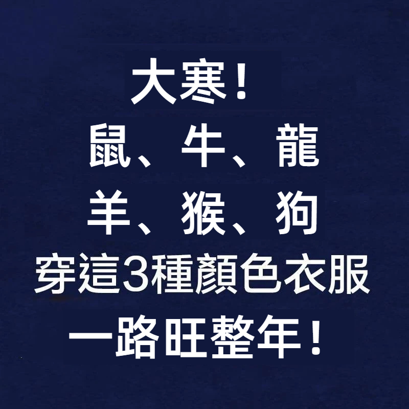 大寒是一年中寒氣最重、也是轉運關鍵點的節氣。這天穿對顏色,就像先把好運「鎖」起來,對整年的財運、貴人運、事業運都很加分。以下幫你整理好 6 個生肖 的專屬開運色,照著穿就對了👇