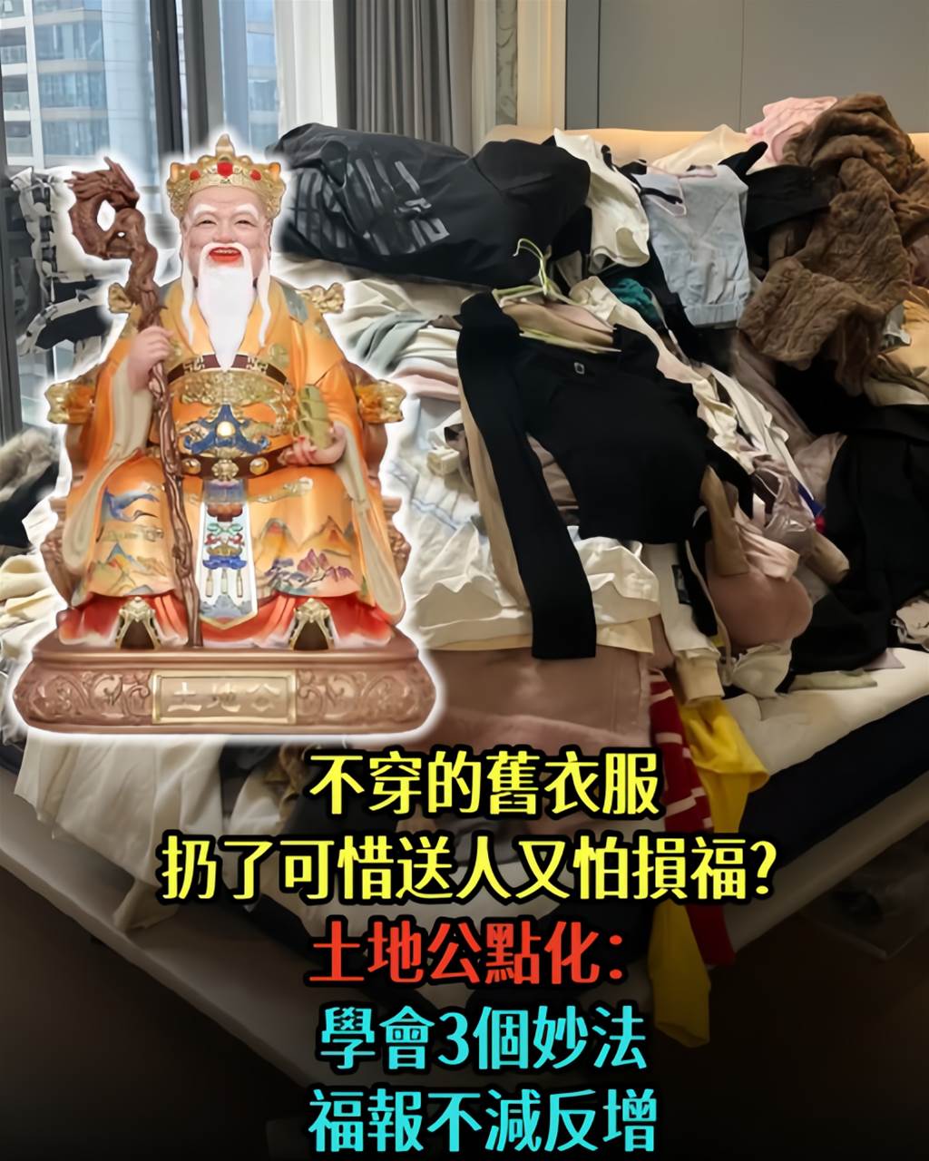 土地公作為守護一方土地、見證人間煙火的神祇,點出了三個關鍵妙法,做好這三步,舊衣不僅不會損害福報,反而能成為積累善緣的橋梁。
