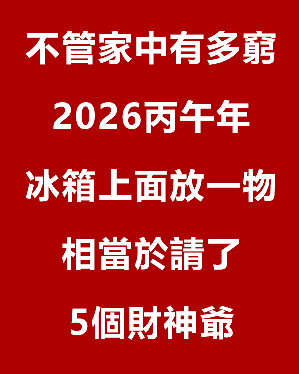不管家中有多窮,2026年丙午年,冰箱上面放一物,相當於請了5個財神爺!第二天就能改命!