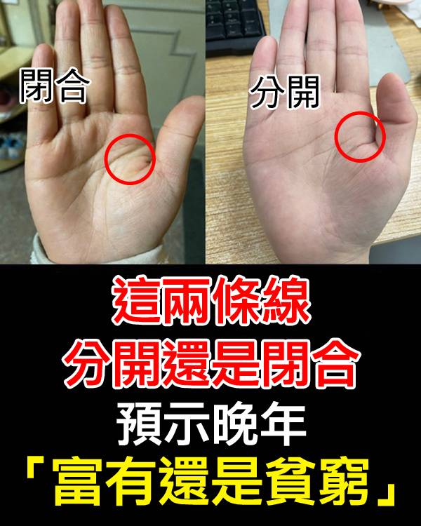 這兩條線是「分開」還是「閉合」?早就暗示你晚年是富有還是貧窮