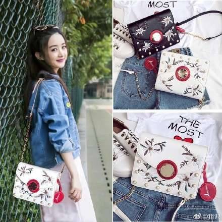 不過您看好,請大家來找茬。這張照片和上週一張有什麼不一樣?對了!趙麗穎背的包包已經從白色簡約款換成了刺繡印花款!