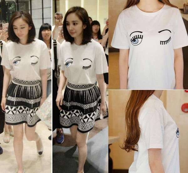 都說衣服不好p圖,但是強大的淘寶還是有方法,比如Angelababy穿的這件T恤。你可以讓她穿出來的樣子是純白打底T恤。