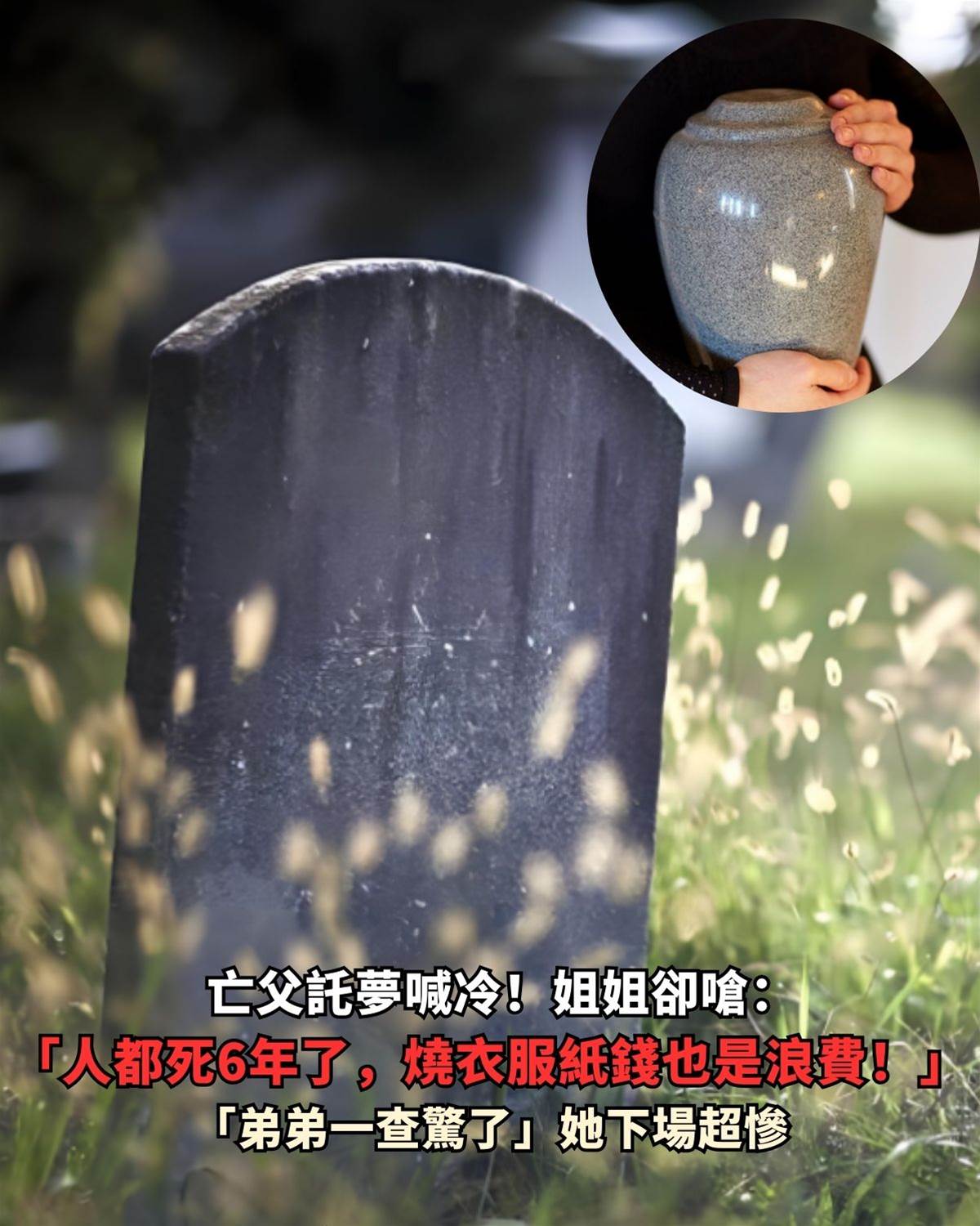不少人認為,夢到過世的人,是在傳達一些訊息,或是帶有警示意味,近日一位網友就透露,朋友連續半個月夢到過世的爸爸,每次都裸著上身喊冷、沒地方住,告知姐姐後,姐姐卻冷回:「燒衣服跟紙錢也是浪費!」沒想到結局卻慘了…