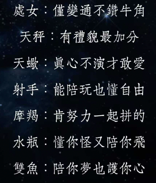 O型血:個性開朗講義氣,坦誠相待。性格頑固、心直口快易得罪人,愛情上不計得失。