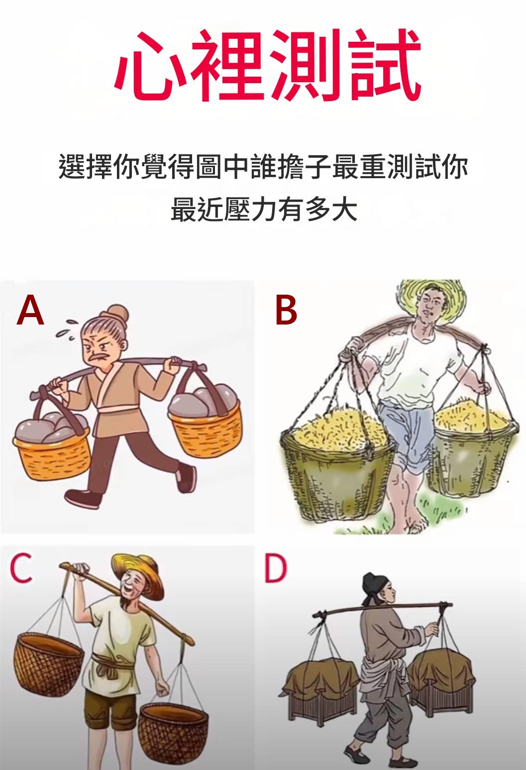 B :你是一個比較樂觀的入,您常常會透過微笑感染身邊的人群所以您的調節壓力的能力還是非常強的,不過有時候由於壓力太大,您也會透過微笑感染身邊的人群所以您的調節壓力的能力還是非常強的,不過有時候由於壓力太大,您也會有調節不過來的時候,您大概有壓力積壓在心裡,這些壓力會讓您感到特別的力不從心,不過對您來說這些壓力自己還是能扛得住,一般也會讓您留下壓力的人。