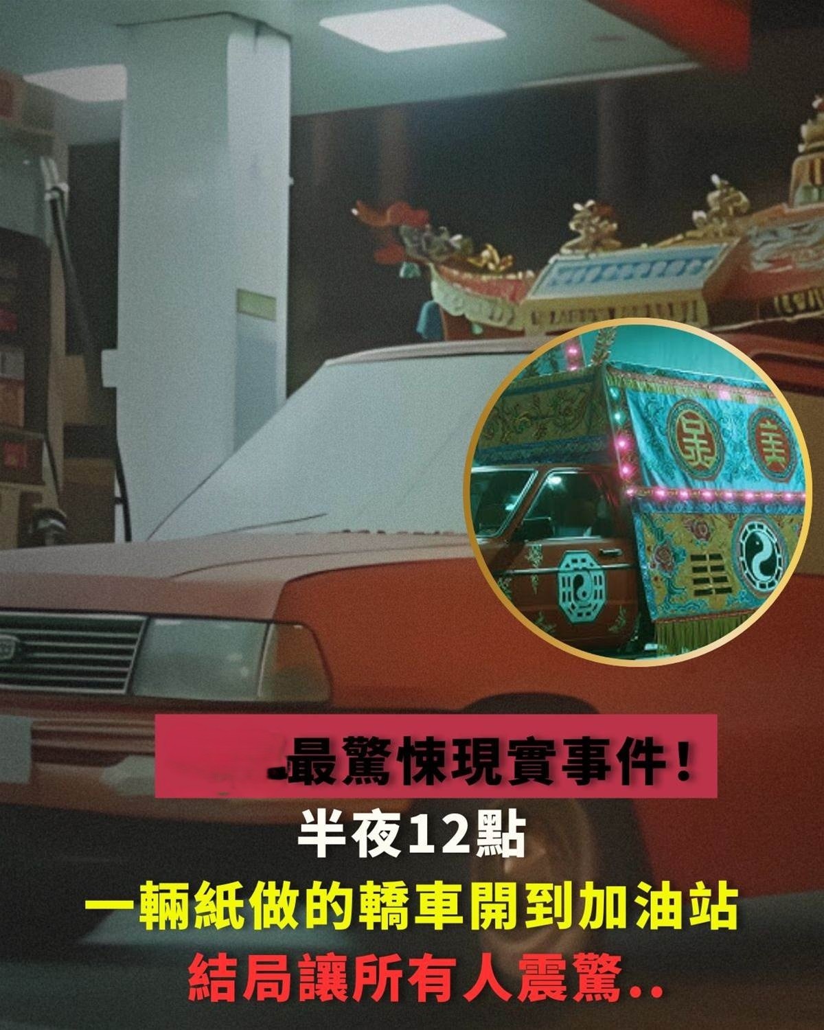 這起「紙車開到加油站」的離奇事件,一名加油站員工深夜輪班時,突然見到一輛造型奇特、閃著微光的「汽車」緩緩駛入油槍區。起初他以為是哪位車主惡作劇改裝車,結果仔細一看,整台車竟是「紙紮的」!當下嚇得他當場愣住,不敢上前。