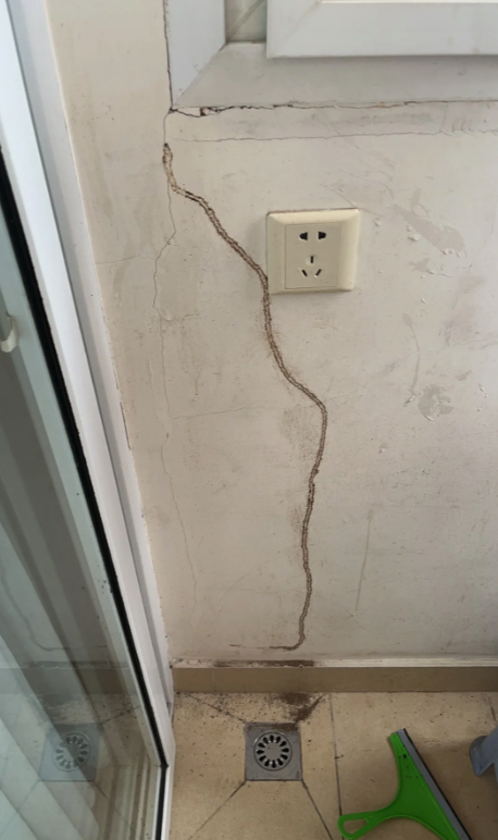 警訊發生:一旦你在牆外看到這麼粗的蟻道,代表牆壁內部、踢腳板或地板下方的白蟻族群已經發展到一定規模,正在大規模擴張領土。