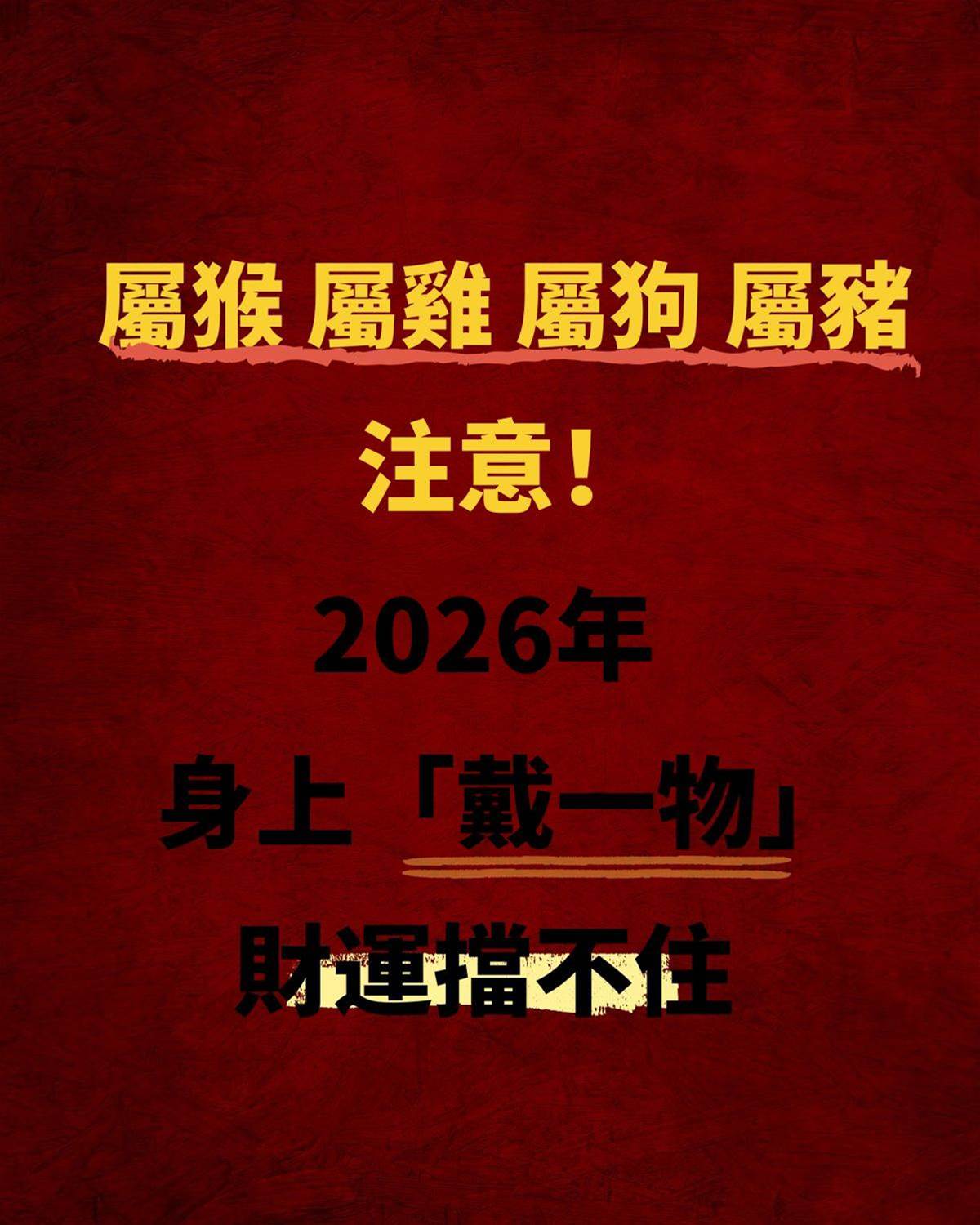 生肖「猴、雞、狗、豬」注意!2026年身上「戴一物」財運擋不住1、2026年屬猴人佩戴什麼旺自己 :紅色手鍊翡翠手鐲屬猴人在生肖文化中被認為是智慧與聰明的象徵,他們能夠克服艱難險阻並取得成功。 在2026年,屬猴人需要吉祥物來增強自己的好運和能量。 在這篇文章中,我們將探討三種不同的配飾,以幫助屬猴人在2026年獲得好運。