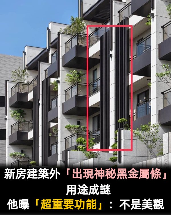 一名女網友近期就對新房子的一款設計感到很疑惑,她在臉書「爆系知識家」發文詢問,「為什麼現在新房子都喜歡用這種一根一根的東西呢?功用是什麼?謝謝大家!」照片中可以看到,現在很多新房都會在外牆裝設平行的長長直條細柱,彷彿變成新建築的標準配備!