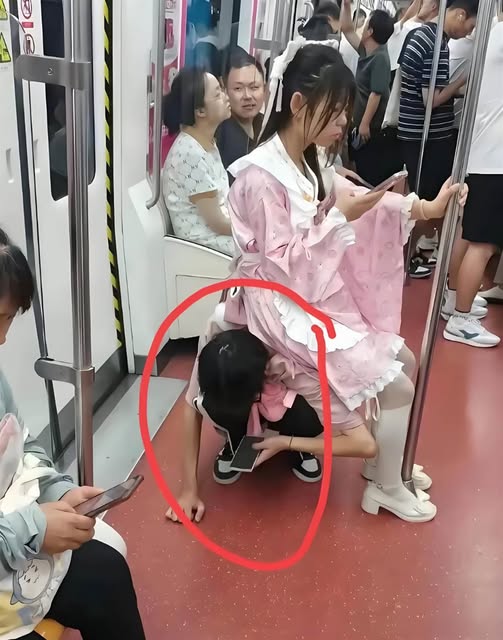 在巔峰時段的捷運車廂內,一名男子雙膝跪地,雙手撐住地板,充當起「人肉座椅」讓女友坐在他的背上歇息。這幅畫面在當時引起了不小的騷動: