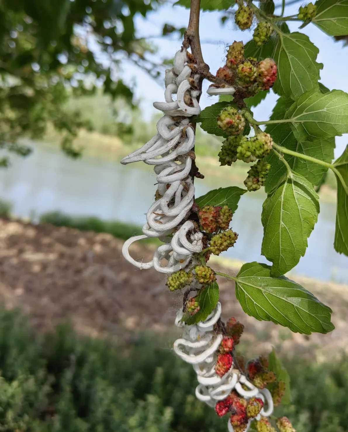 劉女士順著手勢望去,剎那間也倒抽一口涼氣。桑樹枝丫間密密麻麻纏著團團白色絮狀物,像是誰隨意拋灑的脫脂棉,在微風中微微顫動。湊近細看,這些「樹枝上的雲朵」軟綿綿帶著若有若無的腥甜味,看得人心生不安。