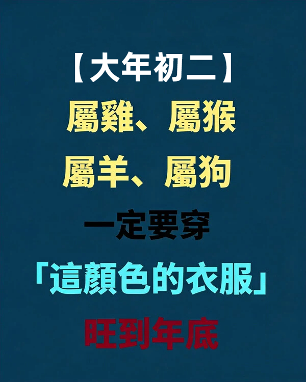 農曆新年來到大年初二,不少人都會回娘家、走春拜年,其實這一天「穿什麼顏色」也超重要!命理老師就提醒,特定生肖只要穿對顏色,整年財運、事業、貴人運都會跟著旺起來👇