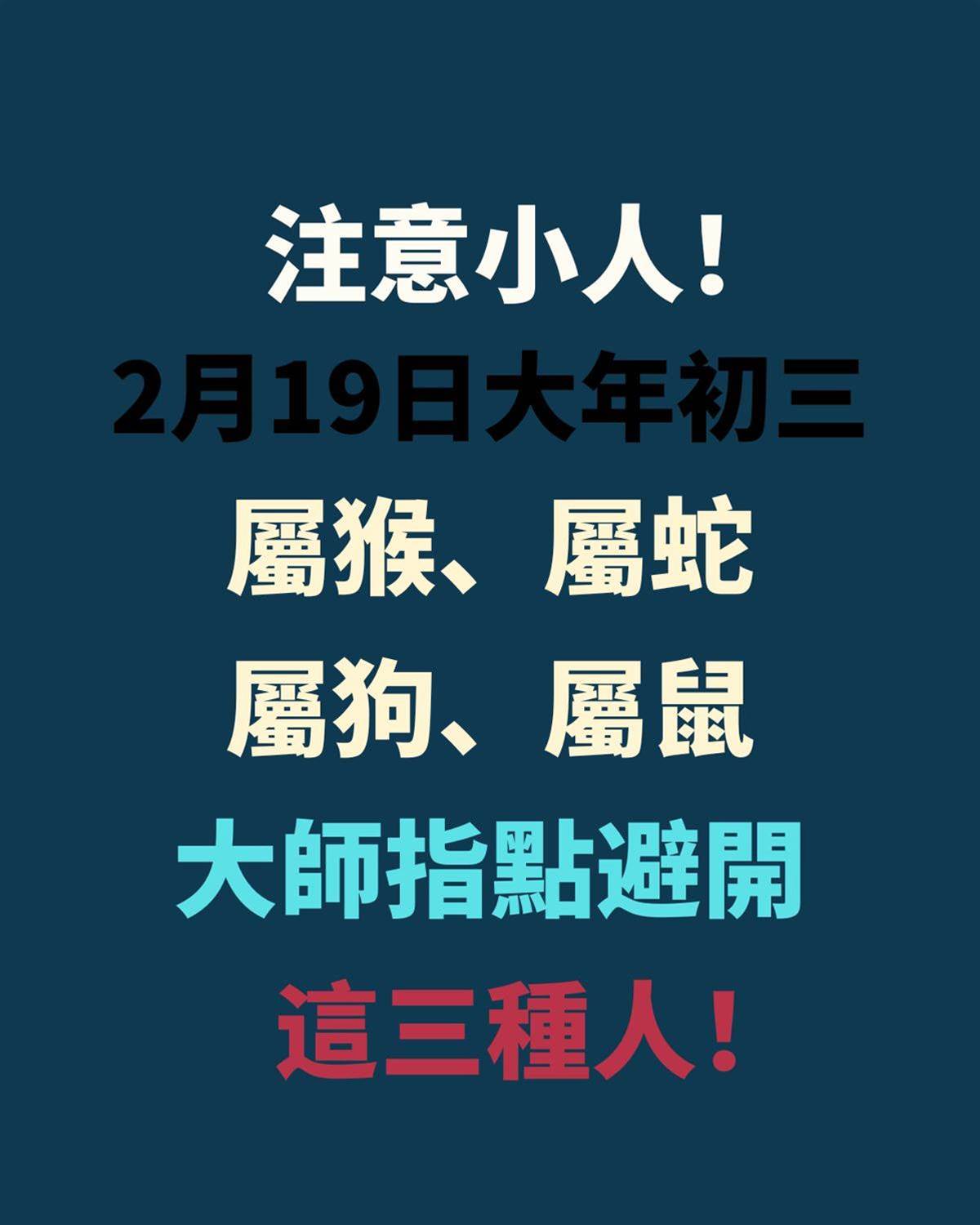 注意小人! 明天 2 月 19 日【大年初三】屬猴、屬蛇、屬狗、屬鼠 大師指點避開這三種人!