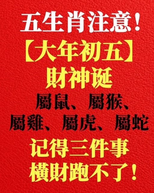 五生肖注意!【大年初五】財神誕!屬鼠、屬猴、屬雞、屬虎、屬蛇!記得三件事 橫財跑不了!
