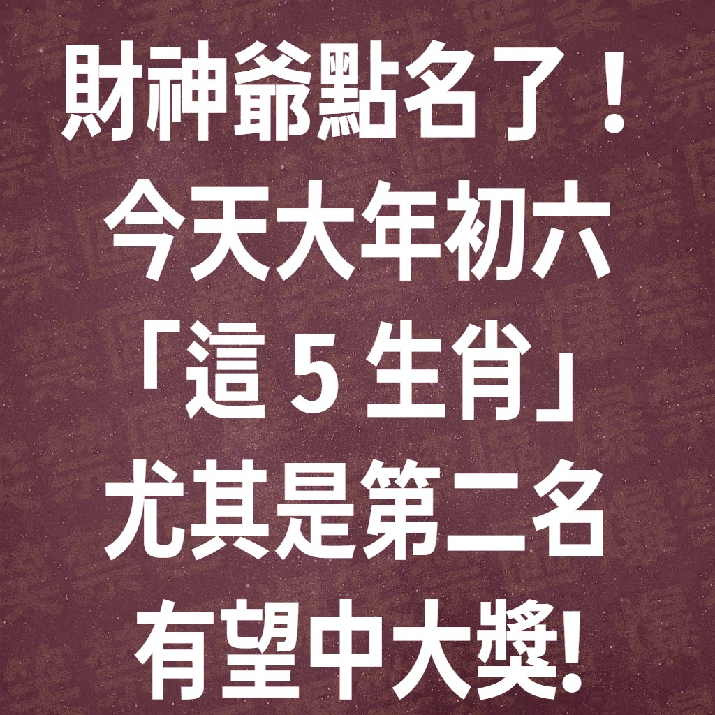 🧧 2/22 初六:財神點名中大獎生肖榜