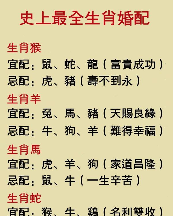 老一輩常說:「婚配看生肖,日子少煩憂。」