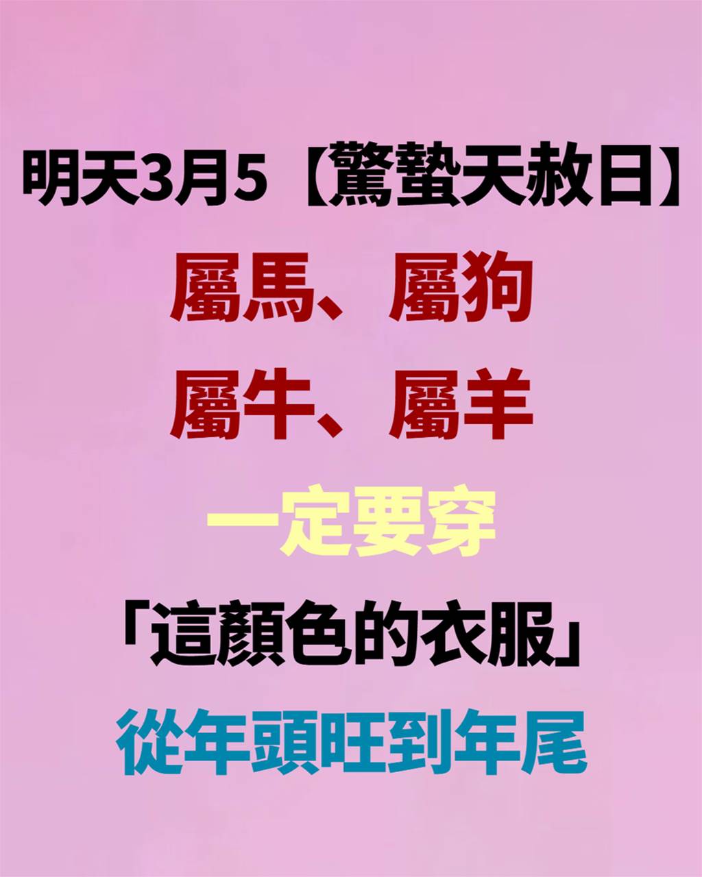 雖然3月5日是「天赦日」,又有驚蟄春雷象征新生,但單日穿衣顏色更多是心理暗示與能量引導,并不能真正「從年頭旺到年尾」。