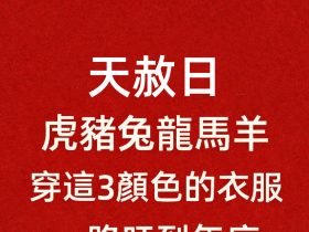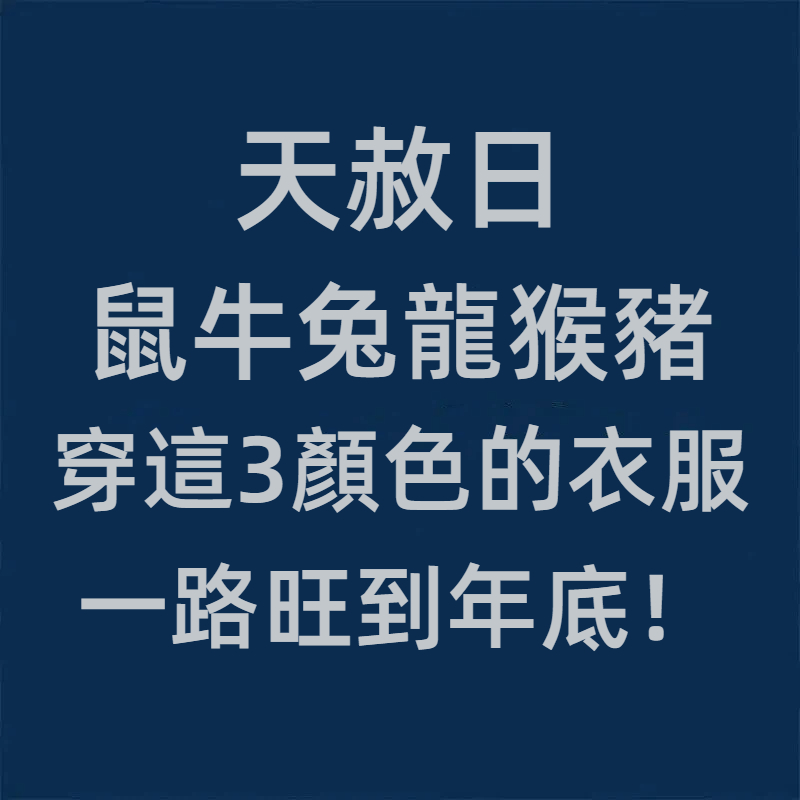 如果家裡剛好有屬鼠、屬牛、屬兔、屬龍、屬猴、屬豬的人,記得提醒他們在天赦日穿對顏色,說不定好運真的就悄悄找上門了。