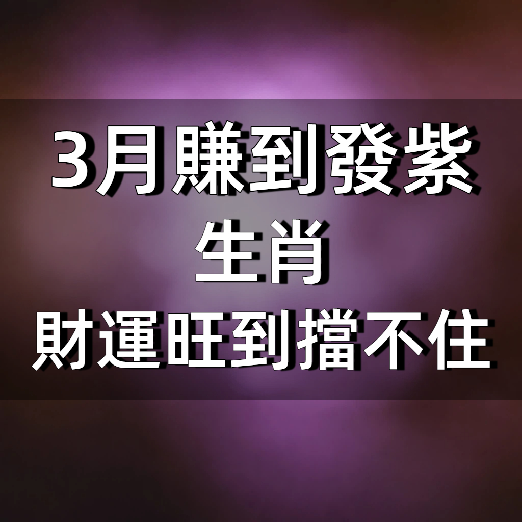 3月到來,不少人的運勢開始出現明顯變化,其中有幾個生肖特別幸運,不只工作順利,財運更是一路飆升,甚至有機會出現意外之財,讓人忍不住笑說:「真的賺到發紫!」