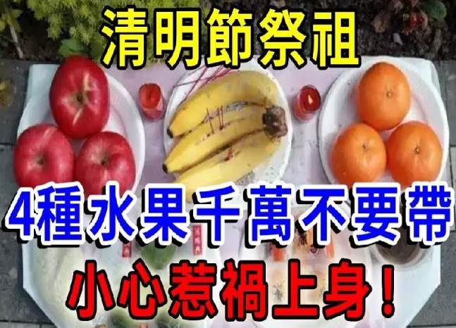 ⚠️ 清明節祭祖,這 4 種水果千萬別帶!是亡者最大的「禁忌」,觸犯恐影響家運!?? 2026年 4 月 5日)是清明節,這一天是慎終追遠、祭拜祖先的重要時刻。? 然而,祭祖供品有許多禁忌,其中「水果」的選擇尤其重要,若帶錯水果,可能會影響祖先安寧,甚至讓家運受損!? 這 4 種水果因為寓意不吉,或與傳統習俗相衝,千萬不要在清明祭祖時供奉,以免觸犯禁忌,影響家人運勢!? 再忙也要看看!這些水果別帶上祭壇,以免影響祖先庇佑,讓家運衰退!? 清明祭祖,這 4 種水果千萬別帶!