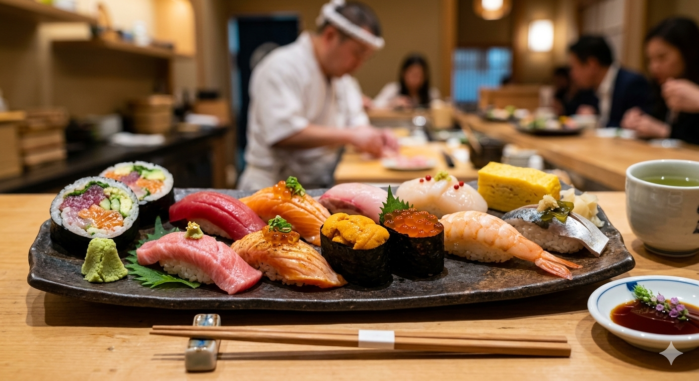 C. 色彩繽紛的頂級壽司(鮮甜生魚片、醋飯香氣)