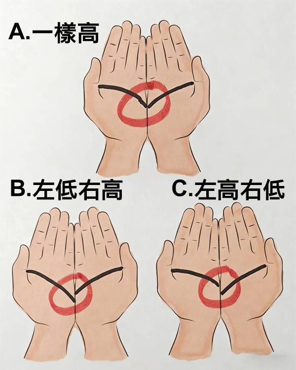 左手感情線較高,右手較低