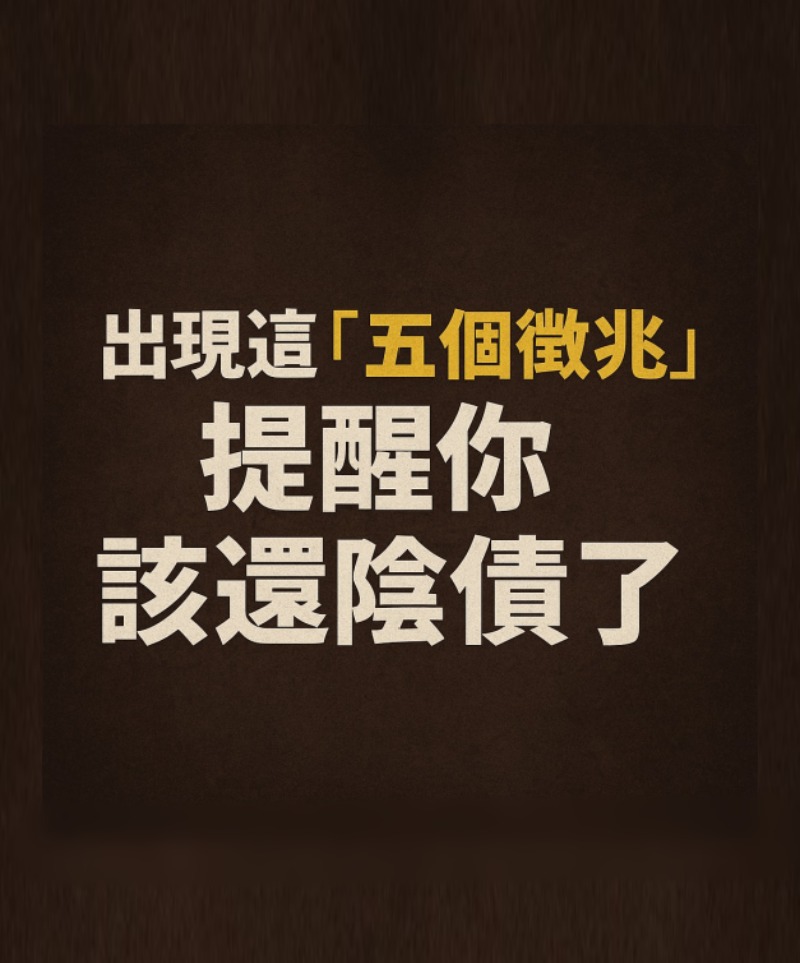 出現這「五個徵兆」提醒你該還陰債了?民間說法很多人都遇過