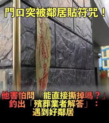 門口被貼不知名符咒!他嚇壞問「能直接撕掉嗎?」釣出殯葬業者解答:其實是好事一件