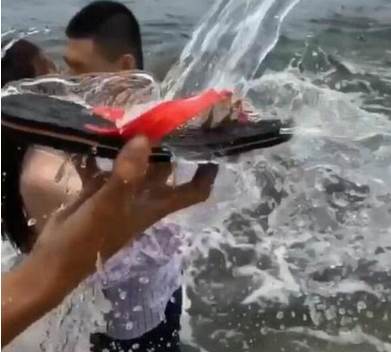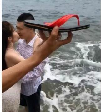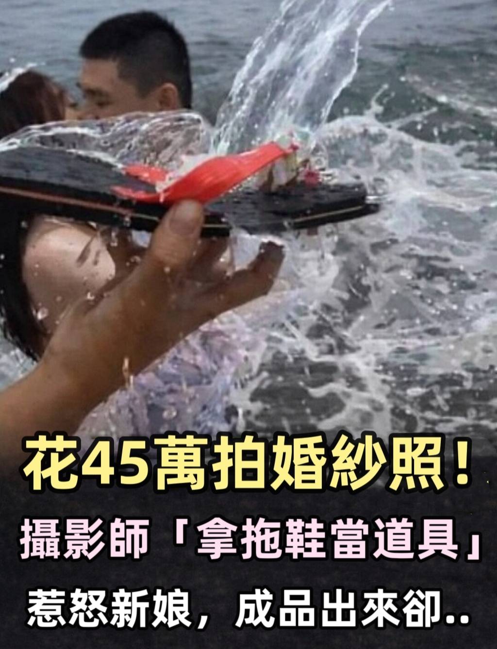 從圖里可以看到,這對情侶來到了浪漫的海邊,他們已經按照攝影師要求擺好pose,隨后攝影師拿出人字拖,這讓在場的人和不少網友們吃驚,為什麼一個婚紗照攝影現場,拿出來一只自己穿的人字拖當道具?不少人表示疑惑,只有這對新人,并不覺得不是好事。