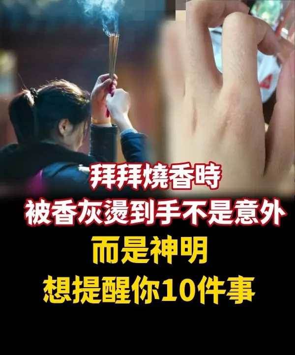 其實這是神明要提醒你某些事情啊!事實上,燒香拜神被燙是有寓意的,一般共分好壞兩大類,