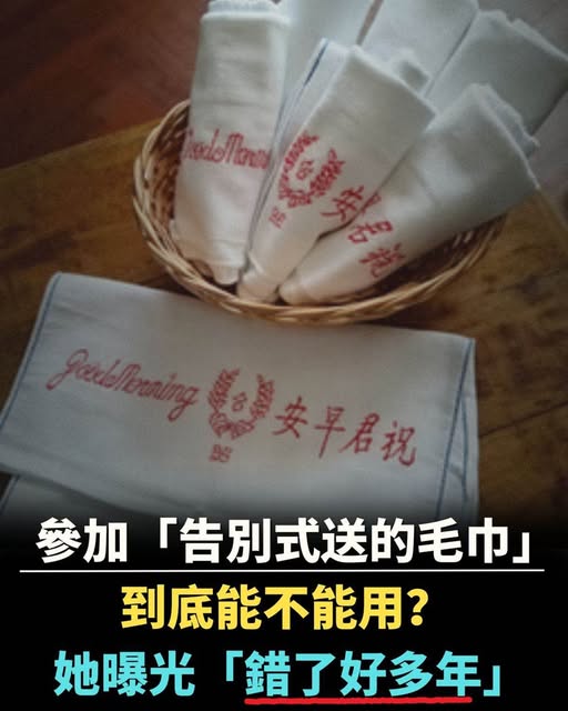 喪家舉辦喪禮時都會送參加者一條毛巾, 原來意在方便人們在長時間的喪禮中擦眼淚或汗水, 有許多人認為為毛巾會帶有晦氣, 但其實是多考慮的, 如果真的在意, 將毛巾洗過之後即可正常使用。