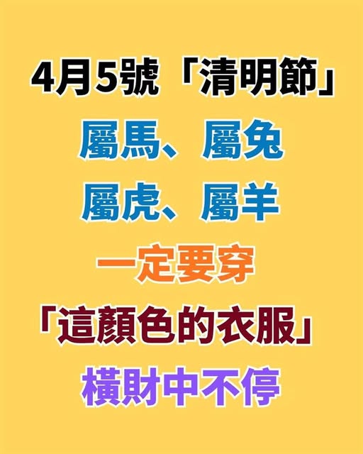 💰 4月5日「清明開運」四生肖穿衣指南