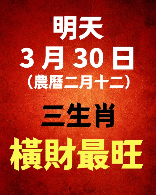 🧧 3月30日:橫財最旺、金庫大開三生肖