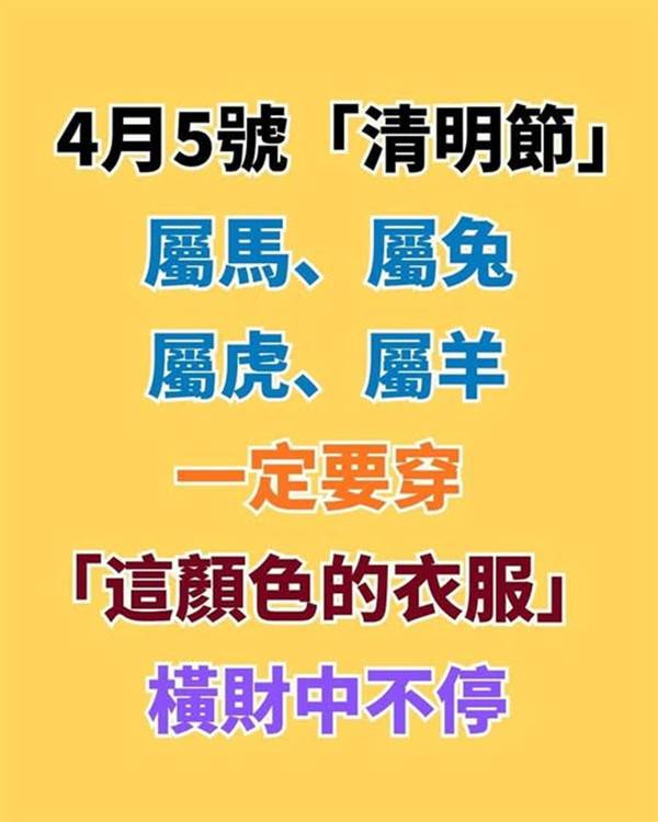 4月5號清明節!屬馬、屬兔、屬虎、屬羊一定要穿「這顏色」,橫財中不停
