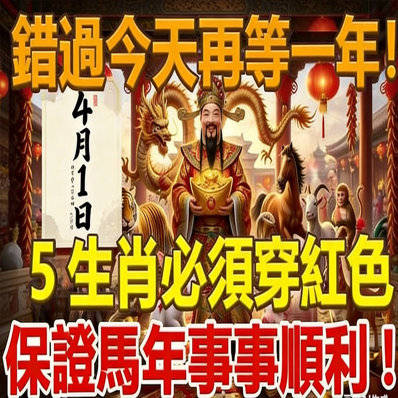 首先提醒,有五個生肖在這一天特別適合穿紅色,幫助提升財運與整體氣場,讓好運更容易靠近。這五個生肖分別是龍、馬、猴、雞、狗。