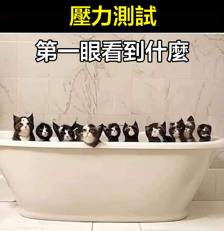 這張浴缸裡排滿黑白小貓的圖片,不僅考驗你的眼力,更是一次直抵靈魂的「壓力測試」! 請屏除雜念,第一眼看向這張圖時,你最先注意到的是什麼?