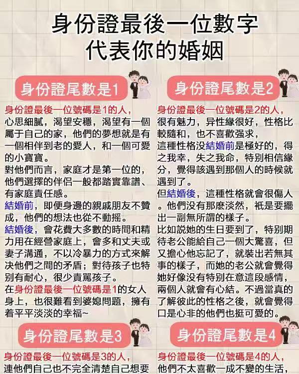 身分證尾數只是命運的一個參考點。無論你的數字是多少,婚姻的幸福都掌握在你的觀察力、包容心與智慧之中。