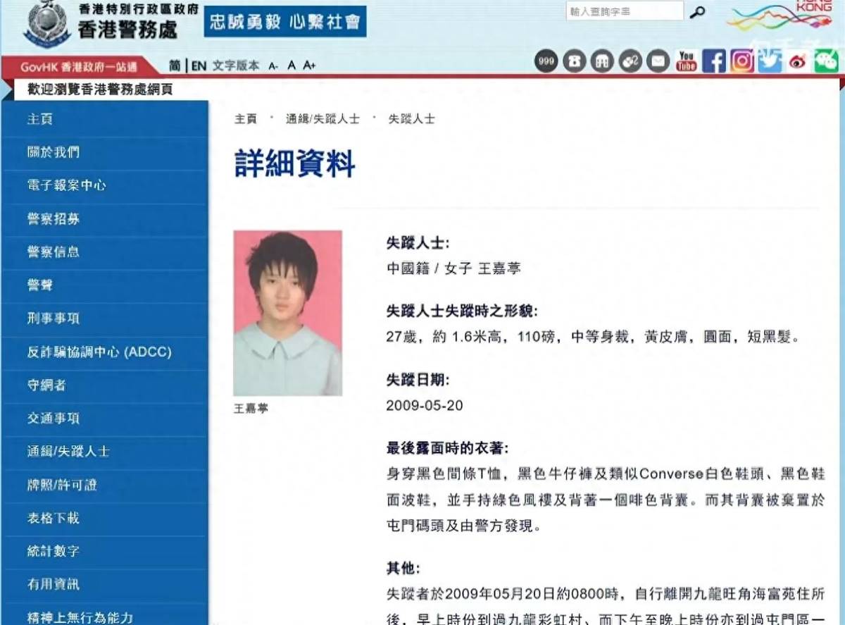 這起事件在香港相當有名。失蹤的女孩叫王嘉葶,2009 年當時才 15 歲,就讀國中三年級。她原本成績優秀,但後來因為遭同學排擠,開始翹課、變得孤僻。