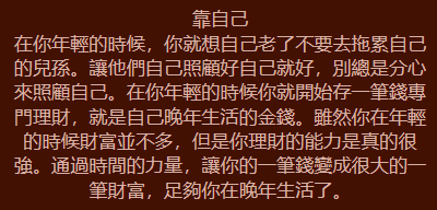 你是個喜歡未雨綢繆的人,對未來的事情都會想得很完整透徹