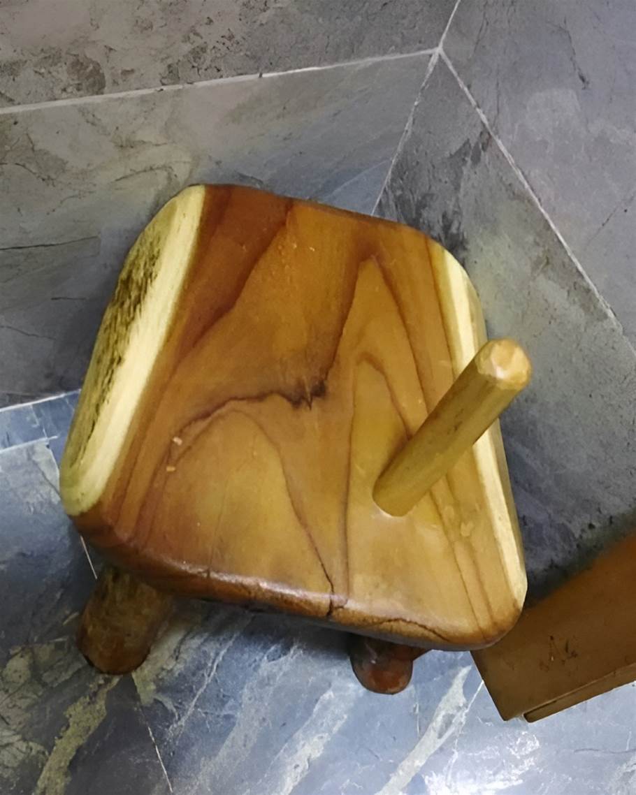 一張普通的浴室小木凳,上面卻多出一根直立木棒,
