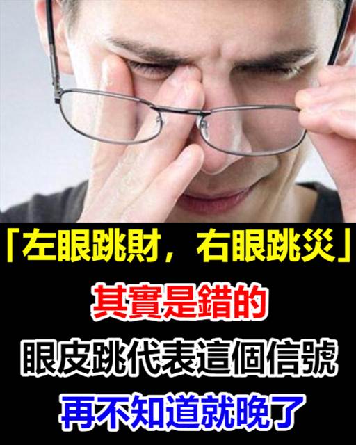 事實上,「左眼跳財,右眼跳災」這個說法並沒有科學依據,眼皮跳動在臨床上被稱之為眼瞼痙攣