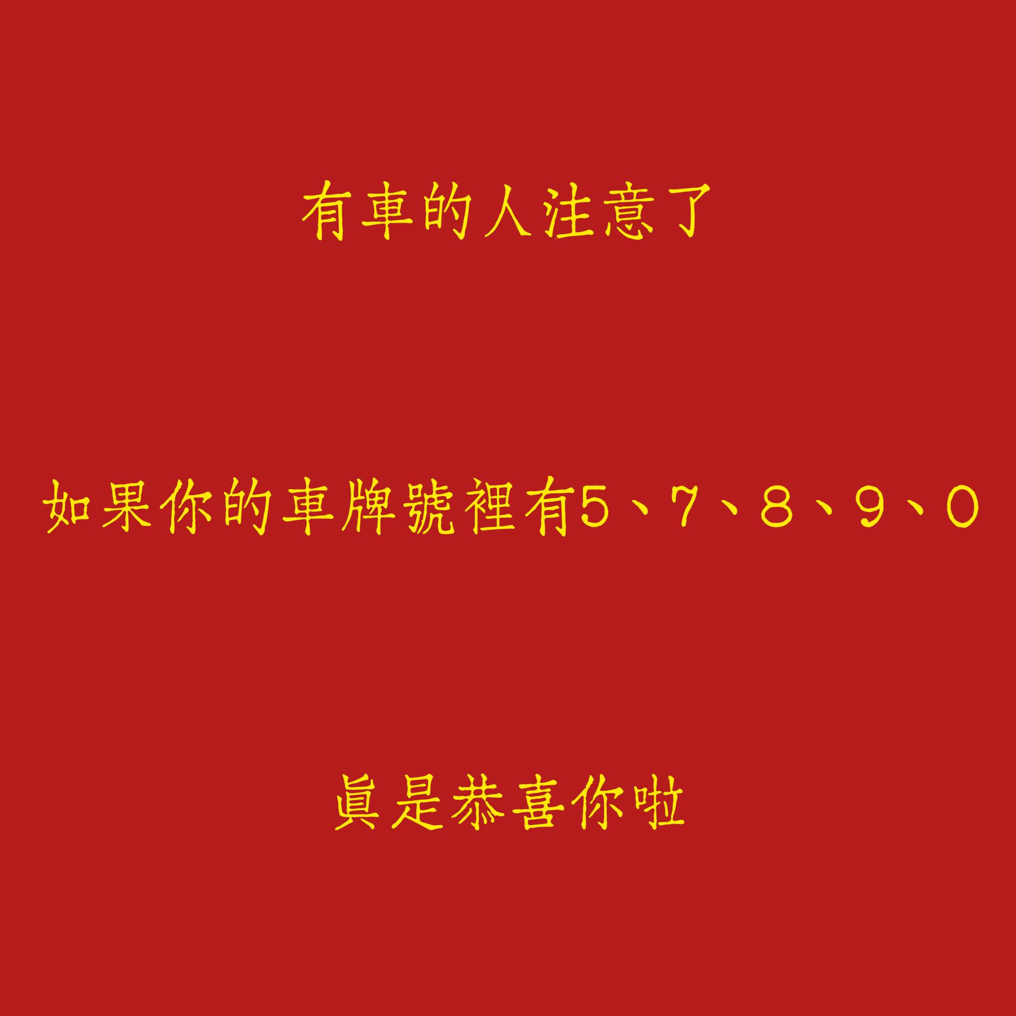 快看看你的車牌,有沒有這幾個幸運數字?說不定下一個財運爆發、一路旺到底的人,就是你!