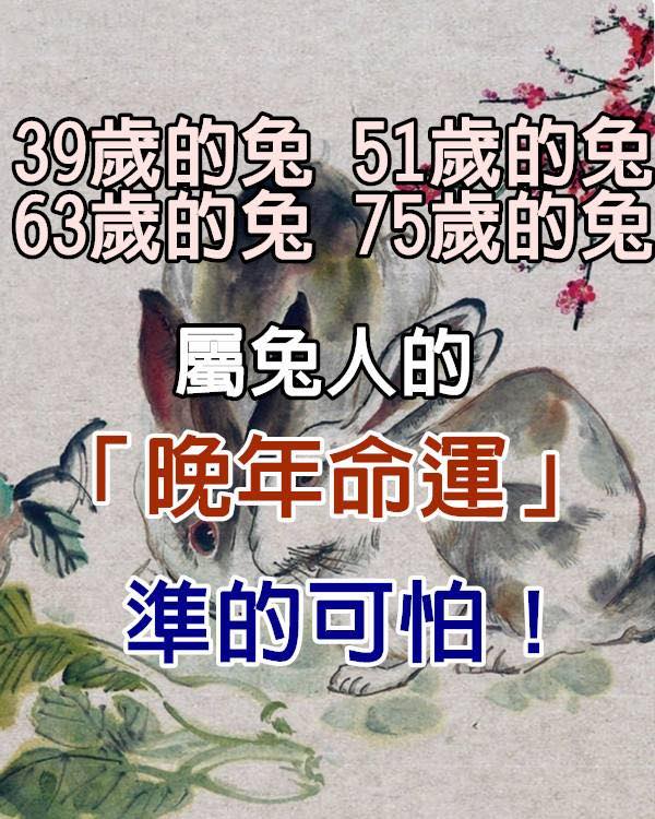 39歲轉運、51歲旺家、63歲聚財、75歲享福,這幾個年齡點,幾乎就是屬兔人命運的重要關鍵。