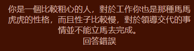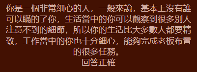 你是一個 自信而有品味 的人。你追求卓越,對生活品質有著高標準。你獨立、有主見,不隨波逐流,就像紐約客牛排一樣,以最純粹的方式展現其價值。你的個性堅定,目標明確,不懼挑戰,總能散發出一種令人信服的領袖氣質。你重視細節,品味獨到,總能在人群中脫穎而出。