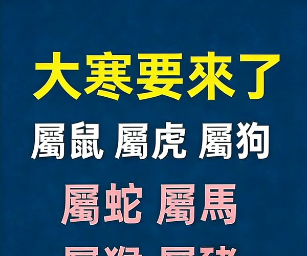 大寒要來了「屬鼠 屬虎 屬狗 屬蛇 屬馬 屬猴 屬豬 」一定要看!
