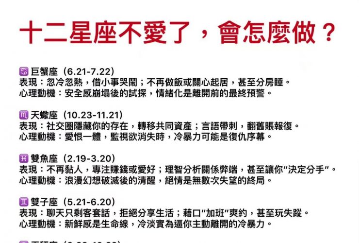 十二星座不愛了,會怎麼做?